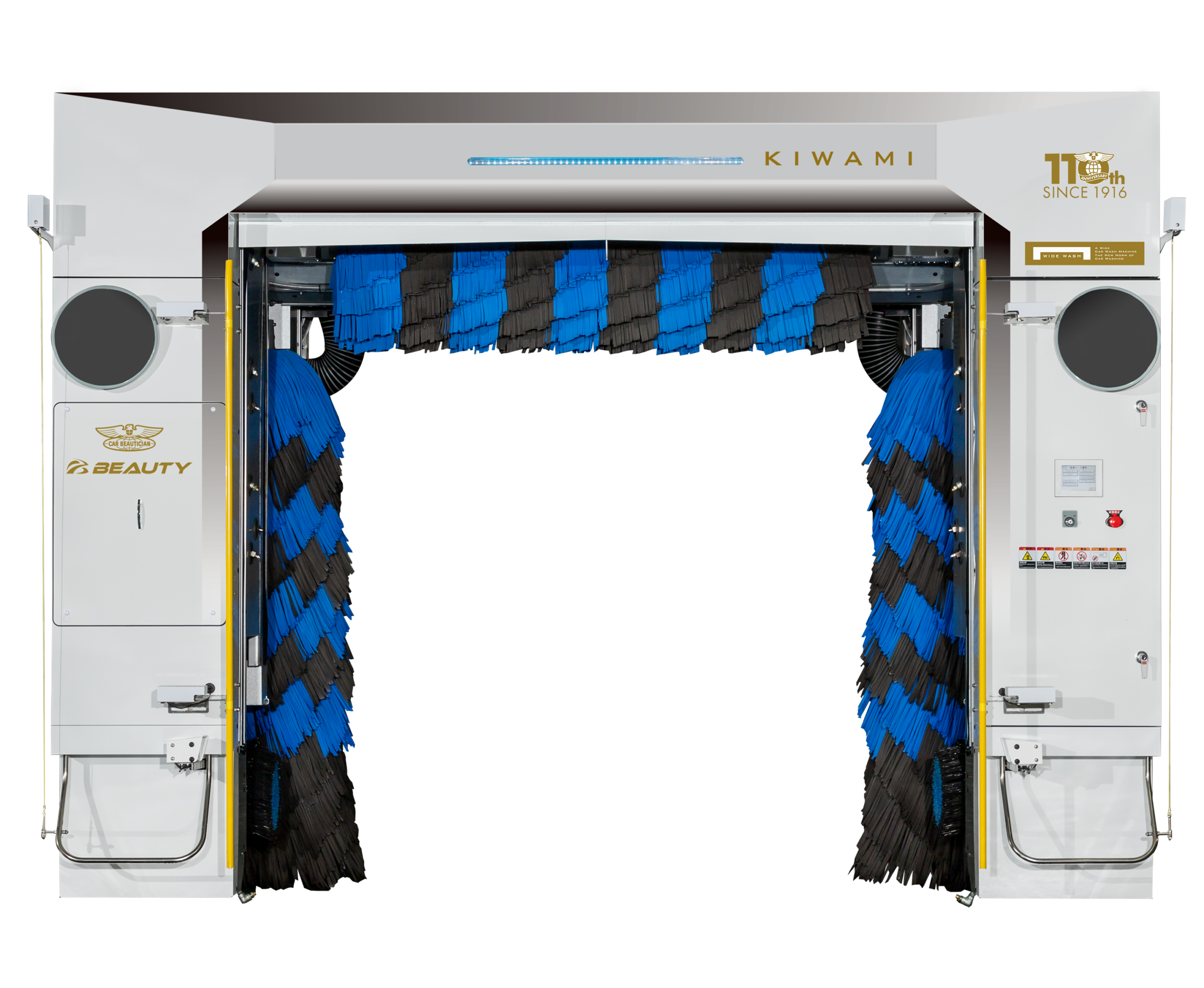 門型洗車機「紀」で初めて採用した3本ブラシ洗浄システム「エクスタイルコントロール」を進化させた「KIWAMI WASH」。新ブラシ形状と新トルクモーターによる電動開閉方式の採用により、これまでよりブラシを細かく自在にコントロールすることを実現しました。また、ブラシ傾斜位置を正確に確認するポジションセンサと新制御システムの採用により今までにない全く新しいサイドブラシ洗浄システムへと進化しました。